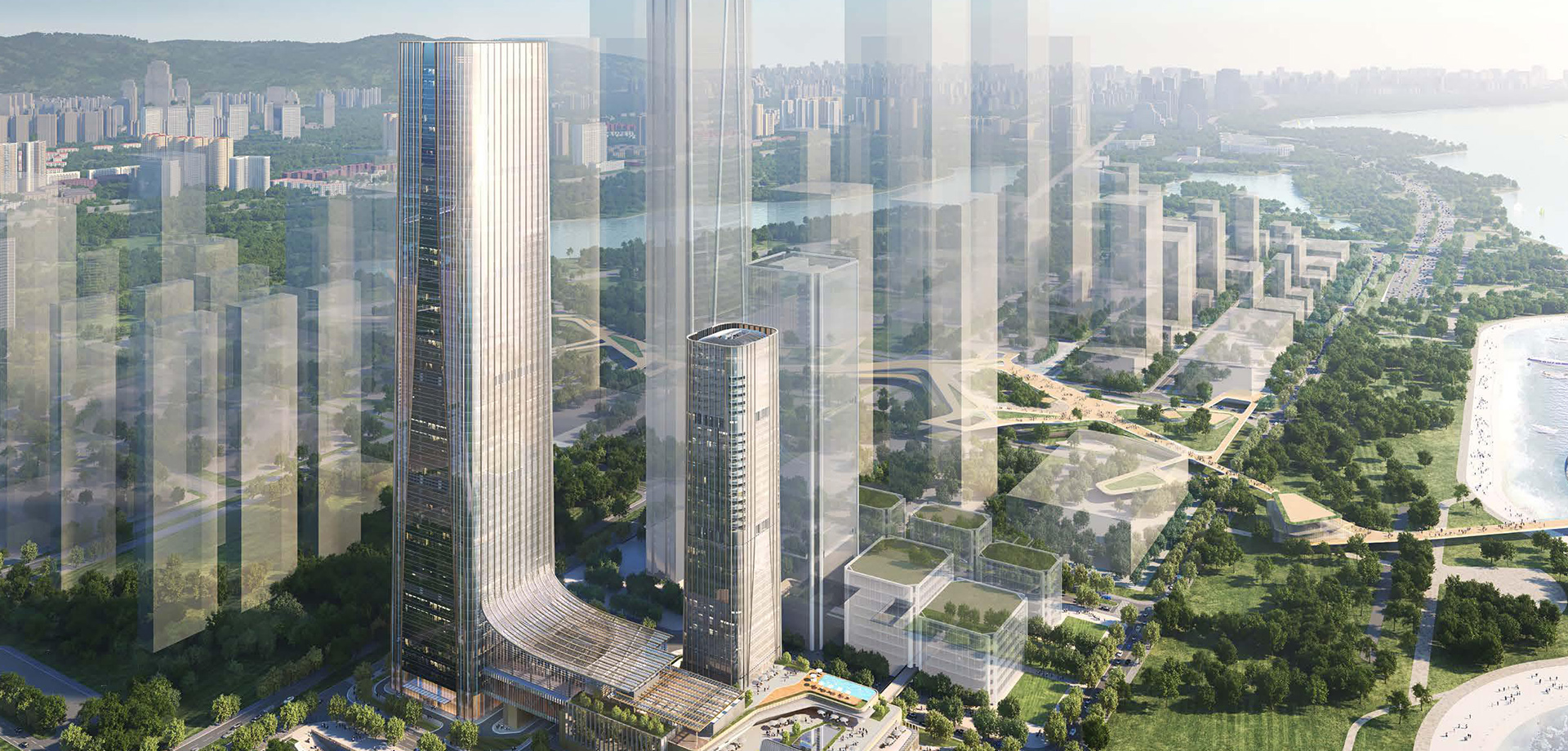 建筑高度:300米(A塔62层)、170米(B塔)