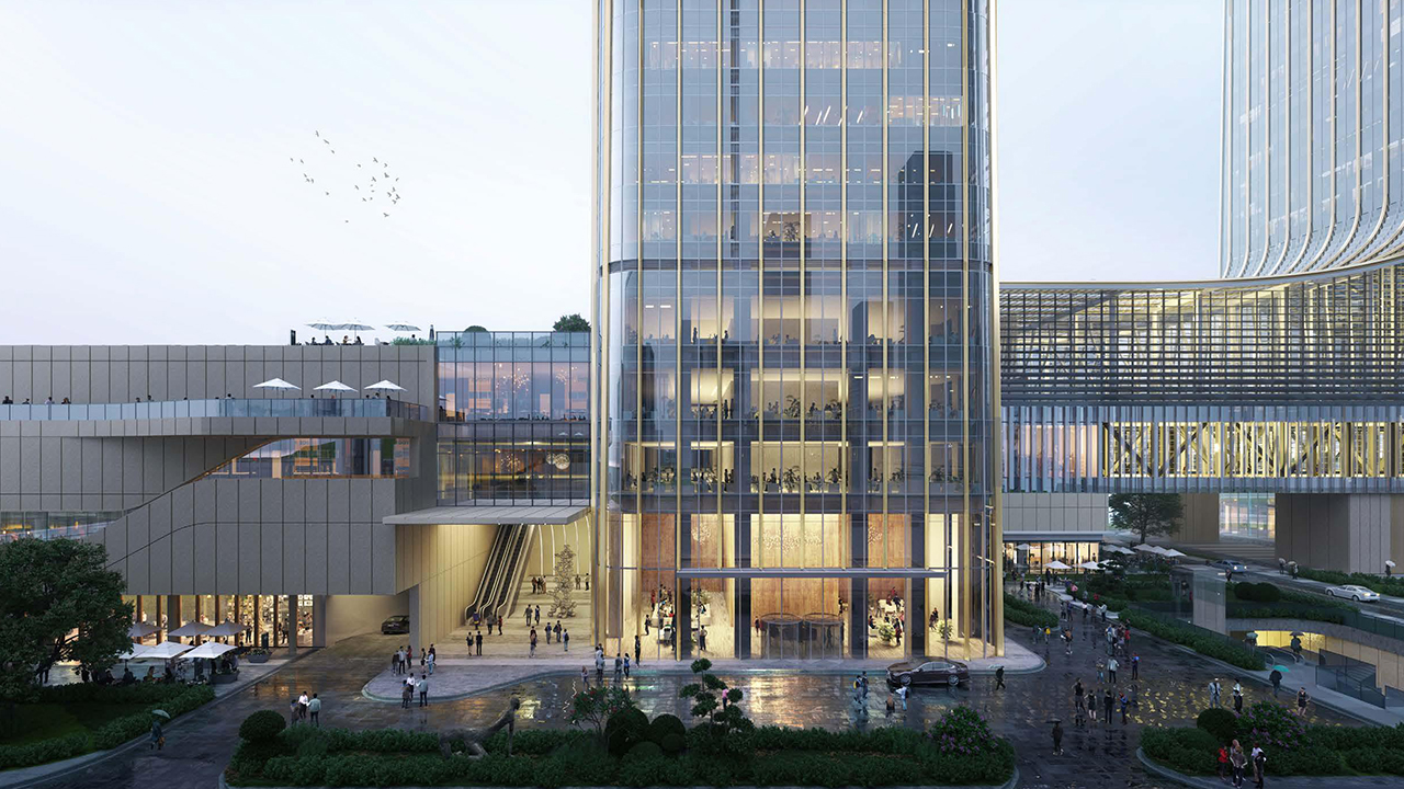 建筑高度:300米(A塔62层)、170米(B塔) 幕墙面积:12.97万㎡ 项目设计:美国Gensler建筑事务所 幕墙类型:单元式玻璃幕墙、框架式玻璃幕墙等