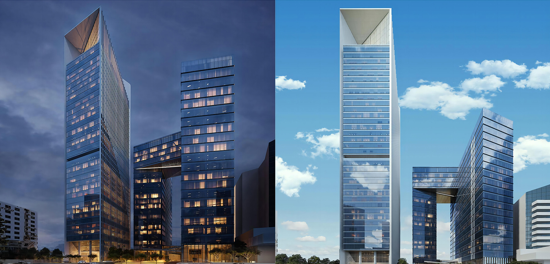 项目设计:Ekarchitects建筑事务所 幕墙类型:单元式玻璃幕墙、铝板幕墙等